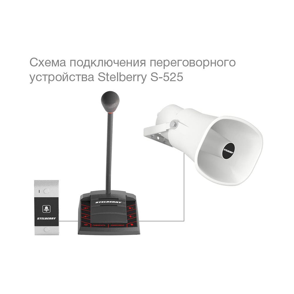 Комплект переговорного устройства клиент-кассир для АЗС с системой громкого оповещения STELBERRY S-525 в первую очередь предназначен для комфортного общения кассира с клиентом через кассовое окно закрытого типа с передаточным лотком, либо через кассовое окно открытого типа, с условием монтажа панели клиента и установки пульта кассира на расстоянии звукового пути не менее двух метров друг от друга.